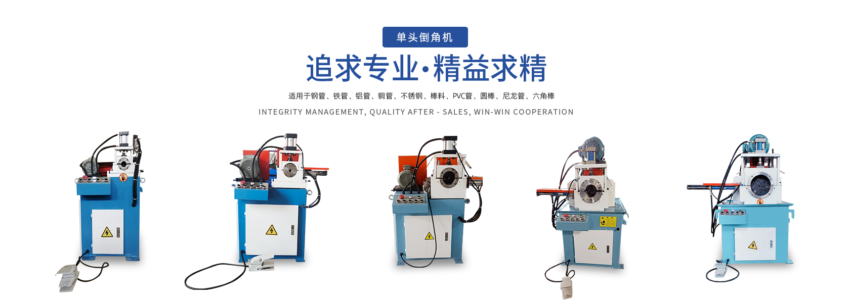 公司目前專注于研發(fā)、制造、生產(chǎn)各類優(yōu)質(zhì)全自動倒角機(jī),現(xiàn)開發(fā)生產(chǎn)的主要產(chǎn)品有:精密雙頭倒角機(jī)、氣動雙頭倒角機(jī)、液壓雙頭倒角機(jī)、金屬圓管圓棒倒角機(jī)、端面加工倒角機(jī)以及單頭液壓倒角機(jī)等等。為汽車、摩托車、體育健身器材、鋼管家具、旅游休閑用品、水暖衛(wèi)浴等行業(yè)的金屬管制品的加工提供了完美的機(jī)械設(shè)備。